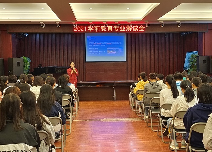 开学伊始,新生入学。为了2021级学前教育的新同学们进一步了解本专业的情况,尽快投入到新的大学生活,合理规划大学四年学业生涯,2021年10月11日上午9:30,全体2021级学前教育专业新生在嘉善楼2楼小音乐厅开展了专业解读会。参加本次专题讲座的有我院学前教育专业教研室主任王丽娟老师、学前教育专业武文斯老师及教学秘书林敏老师。