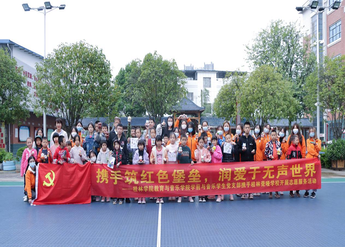 为深响应党史学习“学党史,办实事”的要求,做到学史力行,体现青年一代的责任与担当,提升党员为民办实事的社会责任意识,2021年10月31日上午,教育与音乐学院学前与音乐学生党支部党员代表前往桂林市聋哑学校开展志愿服务党日活动。