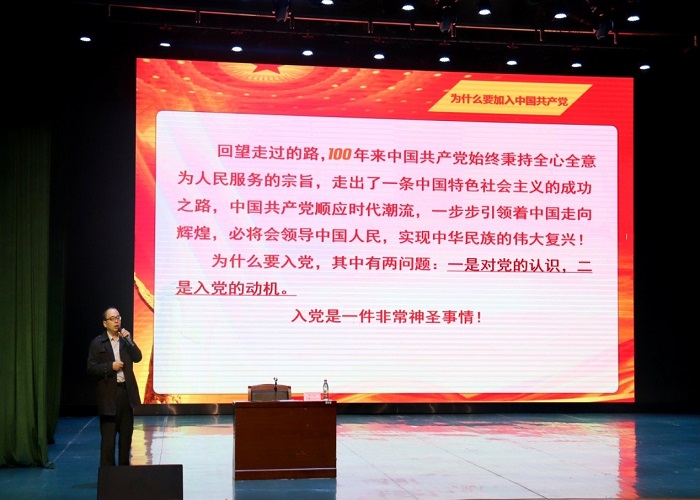 周杰书记从“共产党”一词的来源,马克思主义在中国的传播,中国共产党的诞生讲起,介绍了中国共产党团结带领全国各族人民创造的新民主主义革命的伟大成就、社会主义革命和建设的伟大成就、改革开放和社会主义现代化建设的伟大成就和新时代中国特色社会主义的伟大成就,告诉学生,我们比历史上任何时候都更加接近实现中华民族伟大复兴的伟大目标,比以往任何时候都更加接近世界舞台的中央;以此向学生展示了中国共产党是伟大、光荣、正确的党。党组织对广大青年具有强大的吸引力,主要表现在:中国共产党的奋斗历程和辉煌成就,是吸引大学生入党的根本基础,中国特色社会主义理论体系,是吸引大学生入党的真理之光,党的领袖对大学生一直以来的重视、关心和信任,是党吸引大学生的入党内在动力,而对未来发展远景的科学规划,则是吸引大学生入党的感召力量。