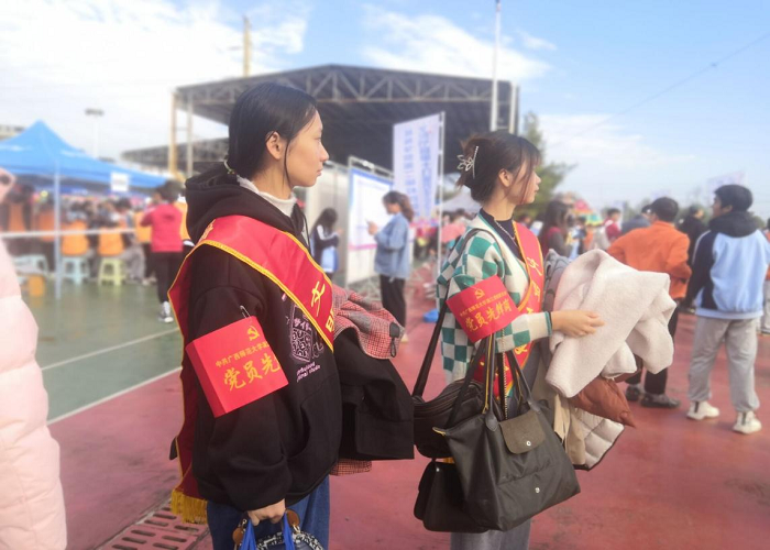 运动会前期,学生党支部制定了详细的值班计划,安排了具体的服务内容。活动期间,党支部志愿者们准备了矿泉水、毛巾、药品齐全的医药箱等必要物品,积极践行党全心全意为人民服务的宗旨,为运动员们提供了及时的服务:协助运动员热身、及时递水给运动员、帮运动员拿衣物、为运动员写加油稿……学生党员志愿者们不畏轻寒细雨,始终坚守岗位,认真工作,充分发扬其不怕苦、不怕累的实干精神,也在实际行动中彰显了党组织的凝聚力和党员的先进性。在比赛休息期间,学生党员志愿者们依旧保持着良好的精神面貌,积极进行赛事引导,为运动员们解答疑问,并提醒其注意事项,得到了一致好评。