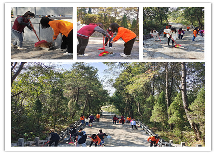 尧山脚下,烈士陵园内,青松挺立,绿树环抱。同学们着装整齐、全体肃立,在纪念碑前瞻仰默哀。接着,师生们对纪念碑前广场和台阶上的落叶进行了清理打扫,用实际行动表达着对烈士英雄的崇高敬意和深切悼念之情。