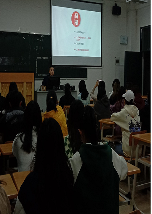 12月3日晚在6229教室雁山区消防大队指导员唐雨翔给教育与音乐学院的部分同学进行消防安全讲座,除了现场同学参与讲座之外,还通过网络直播,更多同学通过直播收听讲座。