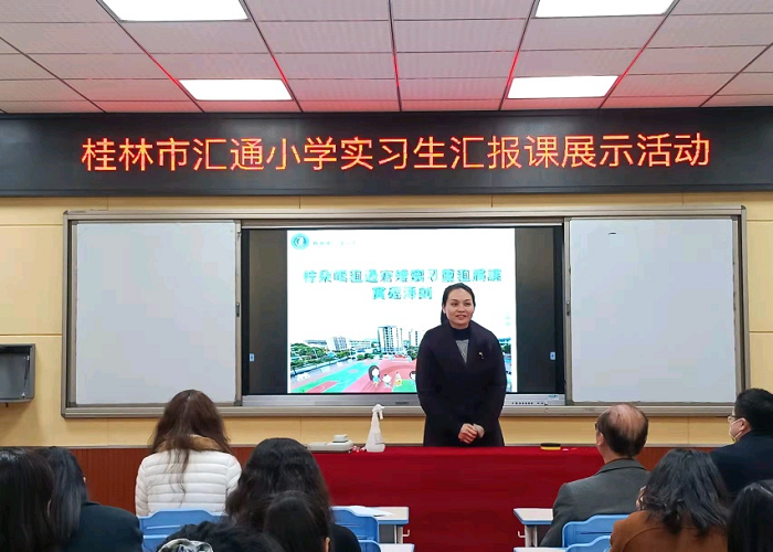 实习长学识,汇报展成果——学院老师赴桂林市汇通小学参加实习生汇报课展示活动
