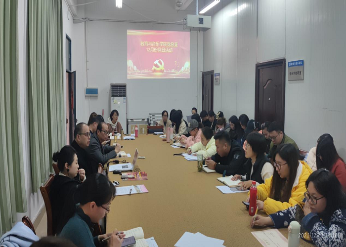 教育与音乐学院党总支于12月22日开展了12月份党日活动。活动主题为学习贯彻中共广西壮族自治区第十二次代表大会精神。此次大会的主题是“以习近平新时代中国特色社会主义思想为指引,牢记领袖嘱托,勇担历史使命,凝心聚力建设新时代中国特色社会主义壮美广西,为谱写全面建设社会主义现代化国家的广西篇章而奋斗!”