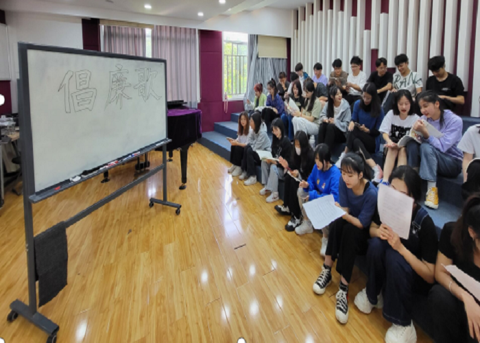 2022年“5.10”思廉日以来,教育与音乐学院的师生们重新排练了歌曲《倡廉歌》。这首歌是由教育与音乐学院周杰教授作词、彭超教授作曲,以倡导廉洁,遵纪守法为主题的原创歌曲,这首歌,从党的建设对廉洁自律的要求、百姓对风清气正的党员干部队伍的渴望,以及廉洁对于个人、家庭以及社会的责任等方面,倡导在全社会形成崇廉向善、修身修德的良好社会风气。
