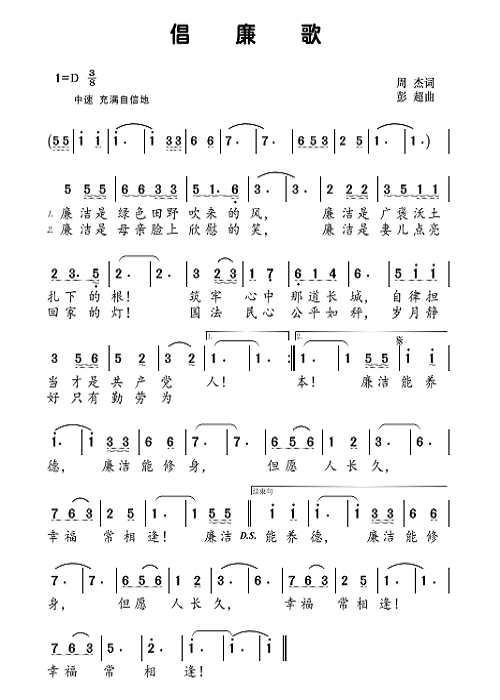 图:《倡廉歌》词曲