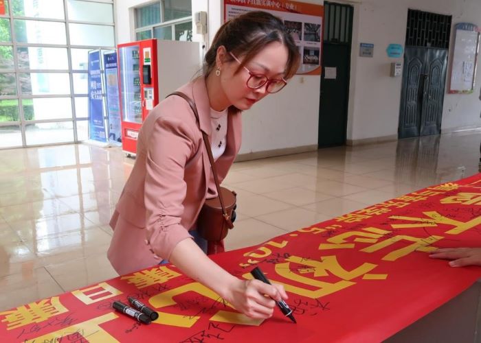 图二:周杰书记带领部分老师签参加签名活动