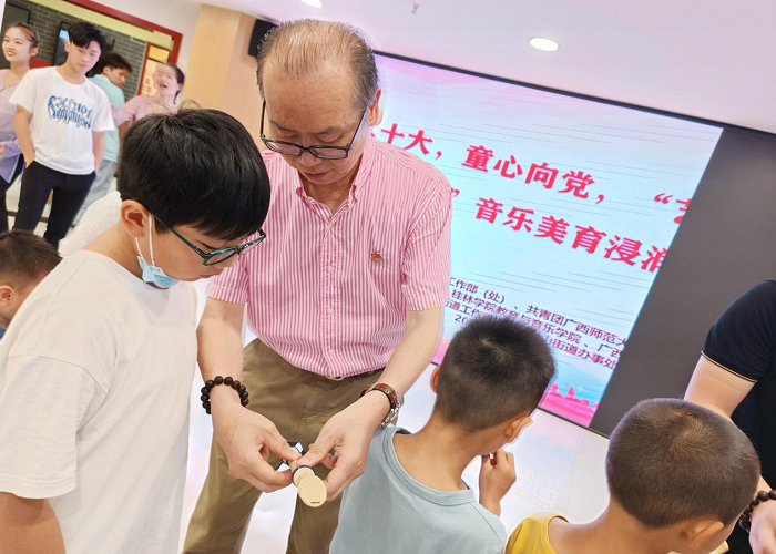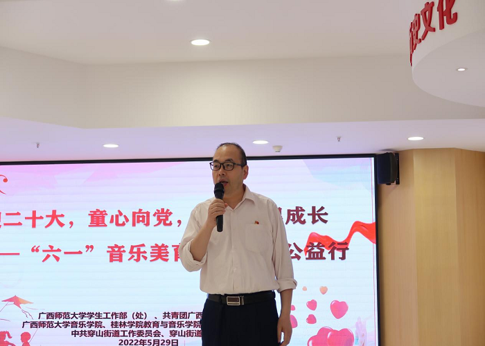 为了庆祝“六一”儿童节,喜迎党的二十大召开,“六一”前夕,桂林学院教育与音乐学院联合广西师范大学音乐学院、广西期刊传媒集团来到桂林市穿山街道,为当地儿童捐赠了多姿多彩的儿童节礼物,还为社区少年儿童及家长献上了一台文艺表演。活动受到了穿山街道干部群众以及小朋友和家长的热烈欢迎。