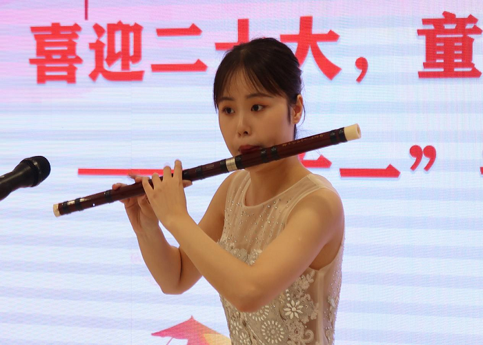 随后,桂林学院教育与音乐学院与广西师范大学音乐学院的师生联合为小朋友和家长送上了一台歌舞表演,有男女声独唱、唢呐演奏、笛子独奏、群舞、三人舞等,师生们深情的演绎、精彩的表演,赢得了现场观众的热烈掌声和阵阵喝彩。为了回应大哥哥、大姐姐们的演出,穿山街道的小朋友也表演了国学朗诵,他们穿汉服、行鞠躬礼,有模有样,非常可爱。