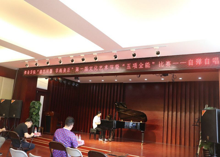 5月26日,教育与音乐学院“德艺双馨,学高身正”第一届文化艺术节暨“五项全能”、舞蹈大赛决赛第一比赛日在嘉善楼二楼小音乐厅顺利进行。决赛评委邀请到了龚苏俊、贺伟、战胜龙三位老师,共有26名选手在钢琴演奏、声乐、自弹自唱、合唱指挥和自选项目五个项目进行了精彩展示和角逐。