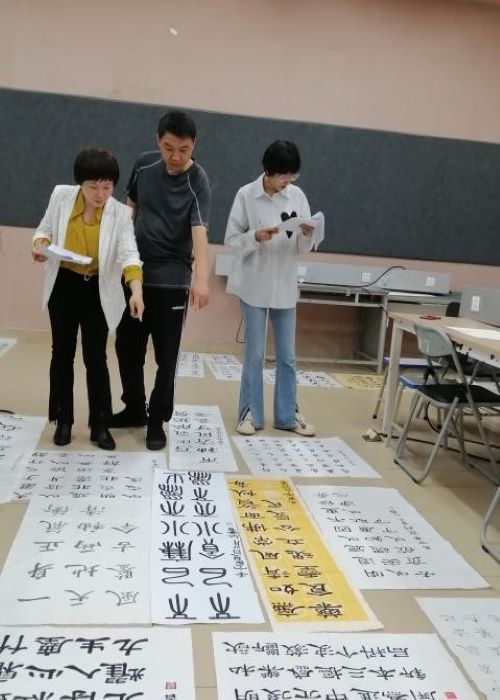 评委老师现场评审书法作品