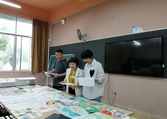 评委老师现场评审绘画作品