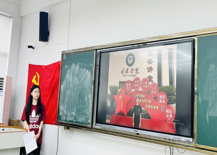 为庆祝桂林学院建校21周年,帮助支部成员了解学校的历史进程,激发全体成员爱荣爱校的热情,2022年5月30日下午,小教与舞蹈学生党支部在嘉善楼6242教室开展“筑梦桂院,爱校荣校”主题党日活动。本次党日活动采取线上线下相结合的形式开展,学生党支部书记王越及支部全体成员共同参与。