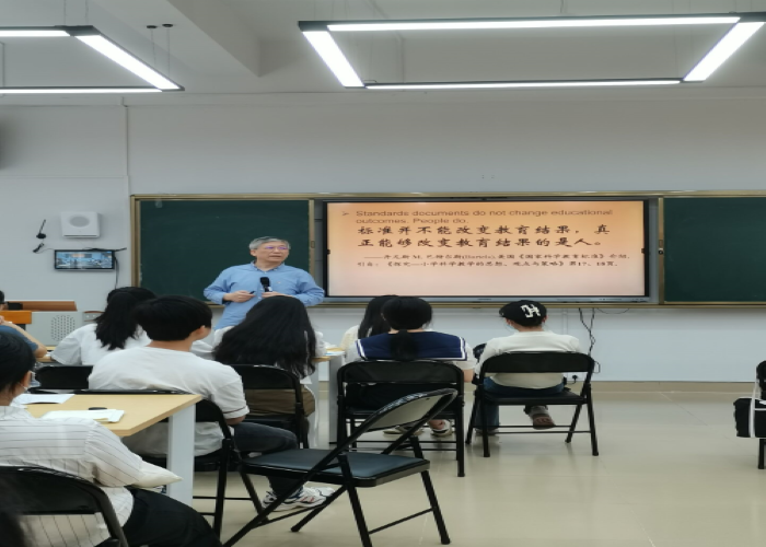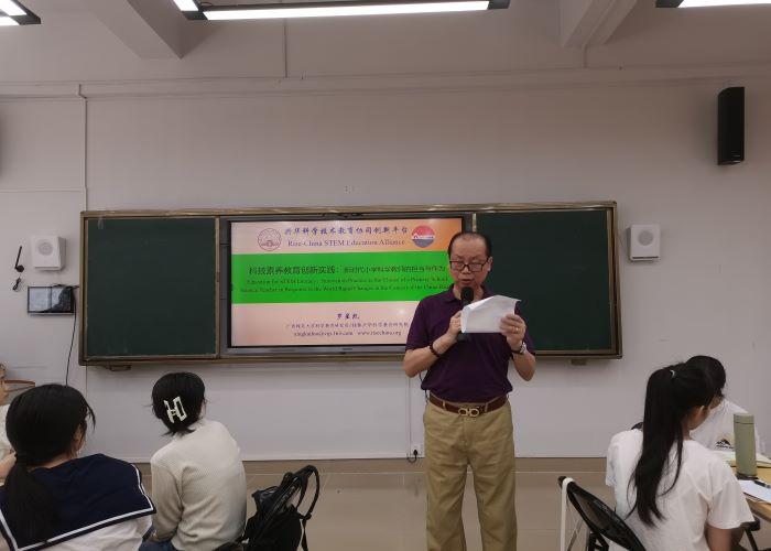 讲座伊始罗星凯教授向同学们介绍教育部对科学教育和科学教师的重视,以加强科学素养开展“新一轮”科学振兴。随后罗教授主要围绕加强基本科学与技术素养建设,通过丰富的具体事例,引导大家思考:一个国家的长胜,是从小学课堂开始的培养孩子的科学思想,培养孩子的科学文化素养,从培养孩子的兴趣出发,不仅要教会学生怎么做还要教会孩子体会其中的科学道理。
