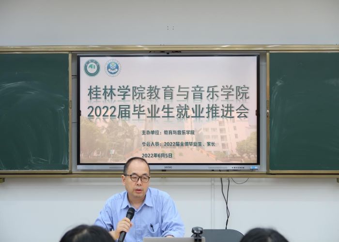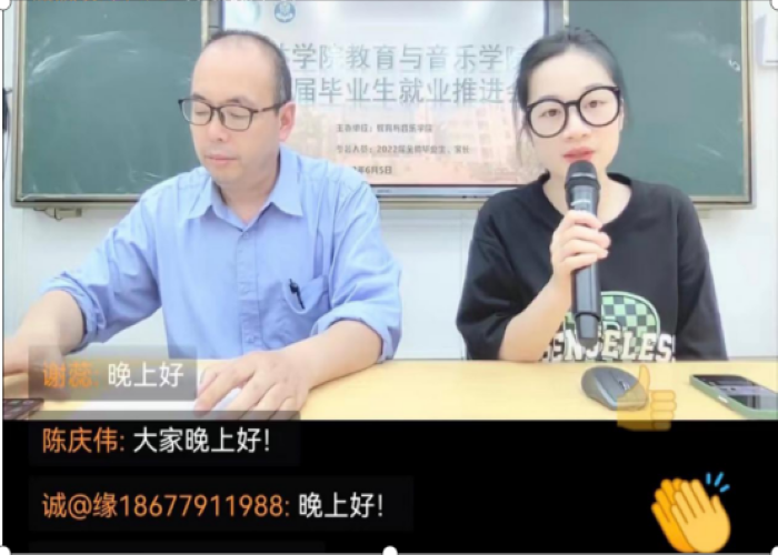 当前正值高校毕业生求职关键期。为积极应对疫情带来的影响,加快推动家校促就业工作进展,全力促进2022届高校毕业生就业。教育与音乐学院于6月5日晚,以线下和线上双会场同步直播形式,顺利召开教育与音乐学院顺利召开2022届毕业生就业推进会。教育与音乐学院党总支书周杰、毕业班辅导员张梅洁、赵红、余华、2018全体学生和家长参与了此次会议。