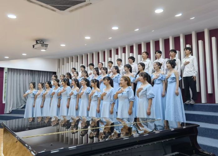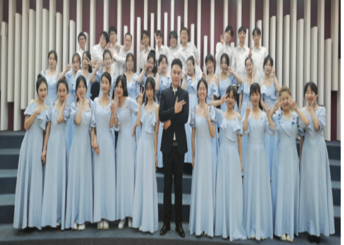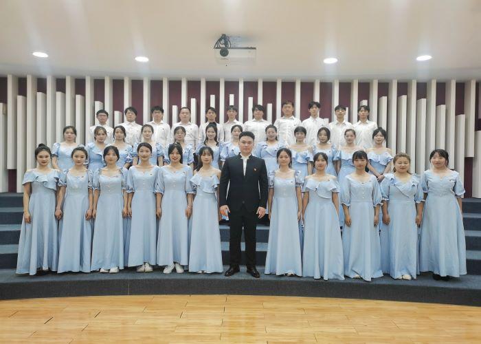 担任本次指挥的教师党员张宗贺对合唱团员们说到:“中国共产党百年走过的风风雨雨,是她带领中华民族经历了烽火连天的战争年代、激情燃烧的建设时期、波澜壮阔的改革开放和社会主义现代化建设时期,迈进了中国特色社会主义新时代。我作为一名共产党员,感到无尚光荣。我永远为我胸前的党徽自豪。”同时也告诉了同学们要一心向党,奋进不止,把个人的发展融入党的事业。