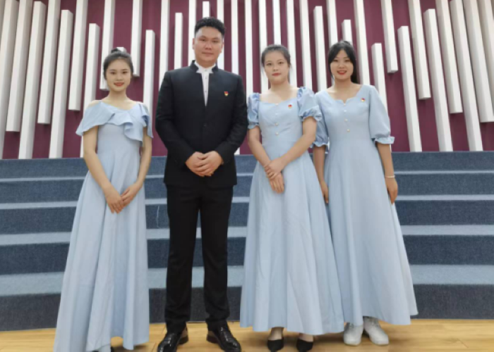 时光进入了六月,“七一”这个庄严的时刻即将来临。一首名为《我爱胸前的党徽》的混声合唱歌曲,由教育与音乐学院周杰教授作词、彭超教授作曲,近期由教育与音乐学院雁声合唱团在紧锣密鼓的录制。