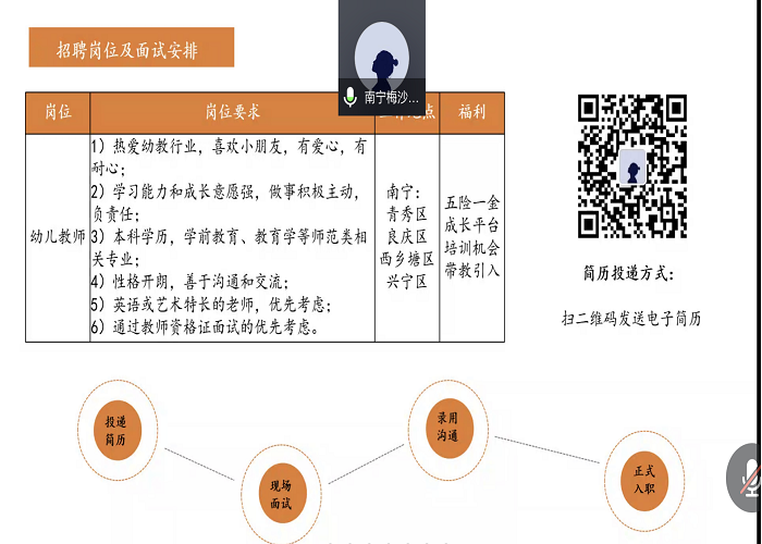 2022年6月21日下午,为更好促进我院应届毕业生及即将实习的学生提供更多更优质的就业岗位,南宁市万科塾投资有限公司旗下梅沙教育集团应邀为我院学前教育毕业班未召开线上宣讲会,2018级学前教育未落实工作学生60余人参会。