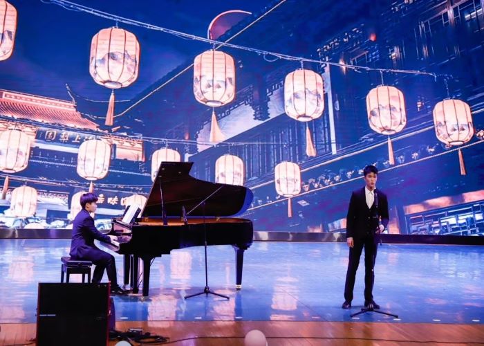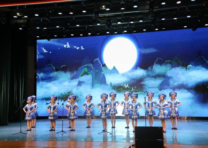 汇报演出分《彷徨》《呐喊》《朝花夕拾》《祝福》四个部分。晚会伊始,开场舞《你要跳舞吗》瞬间点燃现场气氛,并在器乐合奏《告别》《大鱼》拉开了本次晚会的帷幕。演出节目内容丰富,形式多样,融歌曲、舞蹈、舞台剧、器乐等多种表演于一体。歌曲《青玉案·元夕》曲调优美,情感细腻,引发现场观众的内心共鸣,获得一致好评。歌曲《莫尼山》又通过钢琴、长笛及演唱的配合使观众有身临其境的感觉,充分表现出了音乐学专业的学科特色。