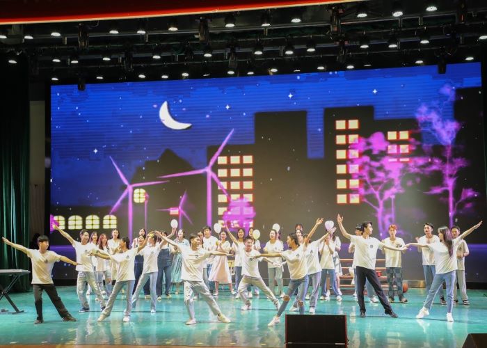 第二部分的节目依旧精彩。学生原创的舞台剧《学着微笑》别具一格,演员们舞蹈和音乐结合巧妙,全场观众掌声雷动欢呼声不绝如缕,将现场气氛推向高潮。第二部分结束后的中间环节听歌识曲,老师和学生积极参与,现场观众情绪高涨!
