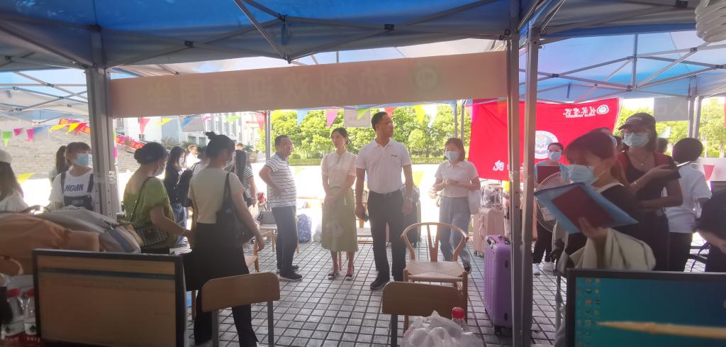 教育与音乐学院院长彭超和党总支书记周杰到报到点,耐心询问迎新师生工作开展情况,了解入学专升本新生来校感受与适应状况,仔细检查新生注册报到相关事宜。