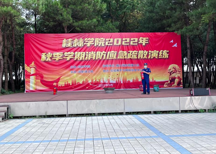 活动开始,由我校刘文革副校长致开幕词,随后由雁山消防救援大队消防员向同学们普及消防安全常识,重点讲解了火灾发生现场应急处置方案、灭火器的使用原理以及注意事项,为同学们进行了全面讲解及现场实际演示操作。一桩桩生动的案例,一项项细致的讲解,一个个知识的介绍,同学们听得很入神,也非常受用。