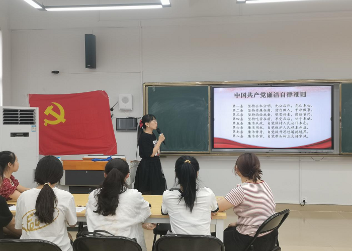 活动最后,党支部书记王越老师带领大家学习《中国共产党廉洁自律准则》,并阐述了“不敢腐、不能腐、不想腐”体制机制建设,讲解了党风廉政建设工作的深刻内涵,让大家认识到腐败的危害性。同时,要求学生党员要时刻牢记廉洁意识,从身边的小事做起,学会抵御“糖衣炮弹”的诱惑,筑牢思想防线,才能经得起考验,以实际行动倡导清廉之风,打造廉洁校园。