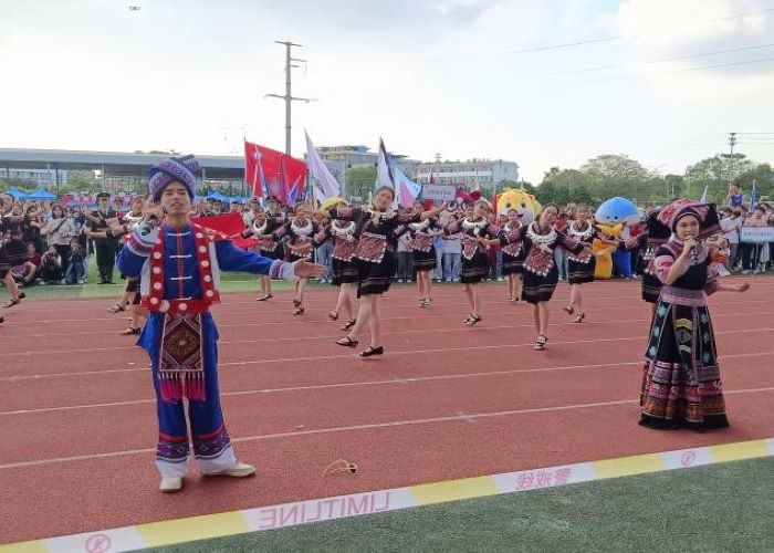 紧接着,在一片欢呼声中由教育学院与校团委联合承办的“咏动青春”歌舞汇演正式开始,汇演中,歌伴舞《想去海边》《壮族敬酒歌》用歌声和舞蹈展现了我院学子的青春活力,舞蹈《竹竿舞》用肢体语言诠释了学生们的蓬勃朝气,展现了我院学子活力四射、积极向上的风采,赢得了现场一阵阵热烈的欢呼声和掌声,将现场气氛推向高潮,成为闭幕式中一道靓丽的风景线。