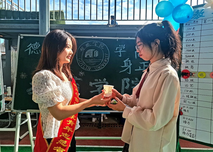 图1 志愿者为运动员递水
