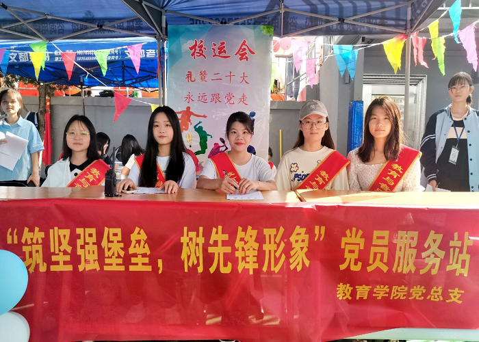 “筑坚强堡垒,树先锋形象”—— 教育学院小教与舞蹈学生党支部设立校运会党员服务站