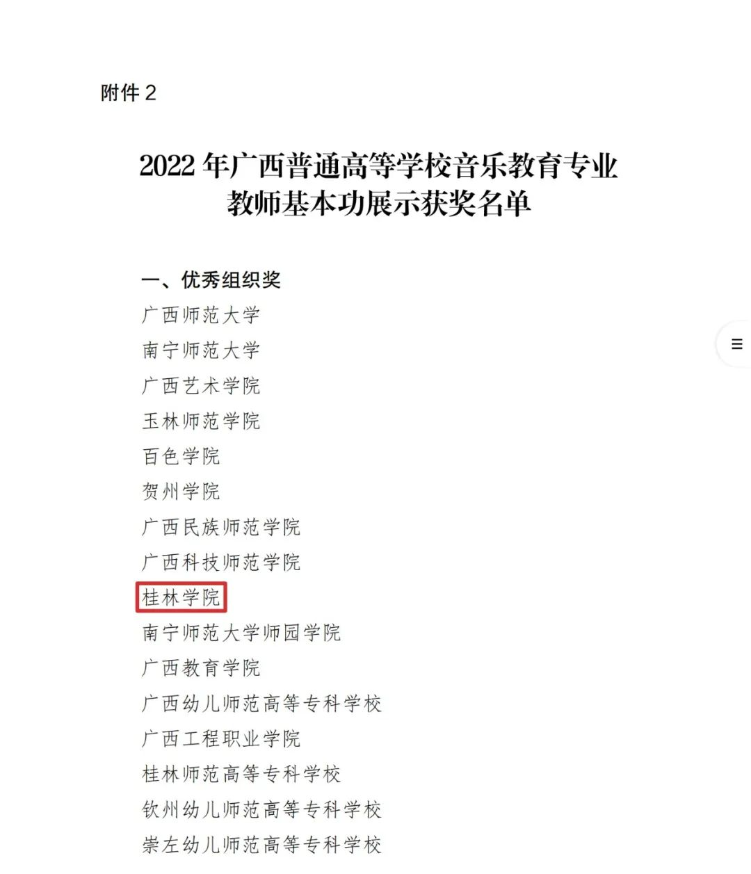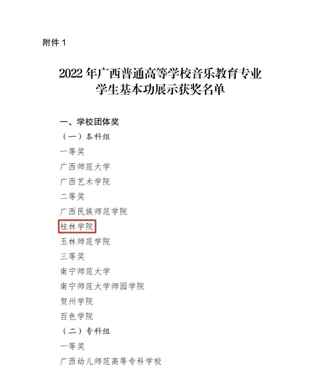 近日,自治区教育厅公布了2022年广西普通高等学校音乐教育、美术教育专业学生和教师基本功展示活动获奖名单,我院师生在本次活动中取得优异成绩!