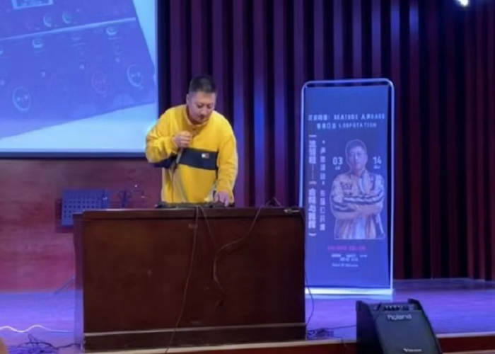 莫伟文老师利用设备来进行展示表演,理论与实践相结合,讲课风格生动有趣,课堂气氛妙趣横生。让同学们了解到与一般的电子音乐形式不同,Beatbox是音乐的一种表达方式,主要是涉及用嘴唇、牙齿、舌头、口腔和喉咙等多种技巧声音来模仿鼓声、电子以及特殊音效的一种新型艺术,也是阿卡贝拉(Acappella)表演中最重要的元素。更加复杂且丰富,利用模仿通过不同的乐器或不同的形式进行合作创造。其通过基本原理教学的科普加上节奏的练习方法,让同学们迅速找到“律动感”。课堂上莫伟文老师通过各种音乐性的组合就成了富有创造力的节奏,营造了轻松愉悦的课堂氛围,学生们都跃跃欲试,他通过简单的教学方法与学生互动,鼓励同学们勇敢上台展示个人学习成果。莫伟文老师独特新颖的教学方式让同学们受益匪浅,使教学更生动活波,兴趣盎然。引导同学们联系多学科及生活经验进行音乐创新,陶冶了同学们的创新能力,培养对音乐的“创意实践〞文化理解,通过自主参与音乐实践活动的环节,提升信心和音乐学习能力,提升了同学们音乐的“艺术表现”核心素养。
