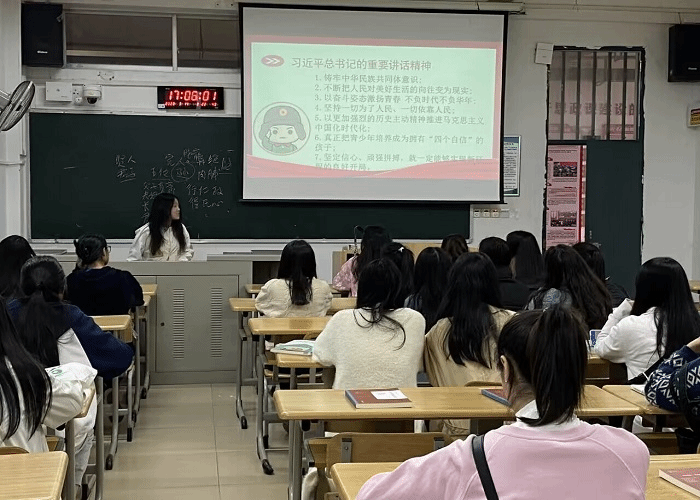 会上,李阿喜同学围绕信仰与意识、榜样与责任、工作要点,带领同学们学习了伟大的建党精神。她表示,伟大建党精神是崇高的理想,是坚定的信念,是服务人民、乐于助人的奉献精神,是干一行、爱一行、专一行、精一行的敬业精神,也是锐意进取、自强不息的创新精神和艰苦奋斗、勤俭节约的创业精神。