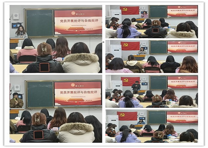 其次,支部书记张梅洁同志带头作个人对照检查、开展自我批评,接受党员批评并表态。党总支组织委员余华老师、支委成员和党员也逐个作个人对照检查、开展自我批评,接受党员批评并表态。各位党员同志本着实事求是、开诚布公的原则,相互提出中肯的意见和建议,指出了许多平时工作的弊端,也纷纷表示今后一定改正缺点,迎难而上,做出更大的成绩。随后,支部开展了民主评议党员的环节。