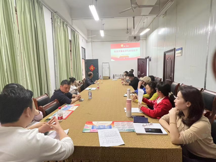 按照会议程序,梁业梅老师代表党支部委员会,向全体党员述职,报告了一年来支部党建工作情况,详细列举了取得的成绩,也陈述了存在的不足和今后的努力方向,并进行了个人述职。随后,全体党员分成三个小组,按照“四个对照”,围绕个人的政治、思想、学习、工作、能力、纪律、作风等方面进行自我批评,同时也对其他党员提出了批评意见。
