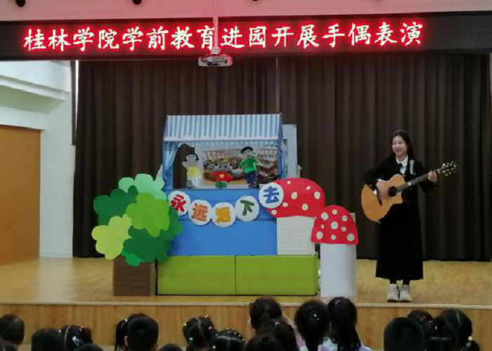 手偶剧共润童心——教育学院走进桂林市龙光e贝幼儿园开展手偶展演