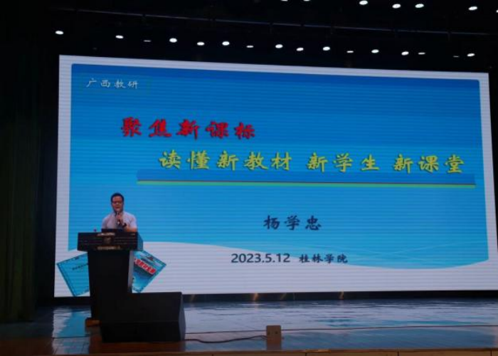 为贯彻落实小学教育专业“高校教师理论讲授+小学教师一线指导”的教师教育共同体建设,让更多师生科学、全面地理解“2022年新课标”相关知识。5月12日教育学院顺利举办了“聚焦新课标 读懂新教材 新学生 新课堂”专题讲座,本次讲座邀请桂林市教科所小学数学特约研究员、桂林理工大学附属小学高级教师杨学忠老师担任主讲嘉宾,来自小学教育专业500多名学生聆听了本次讲座。