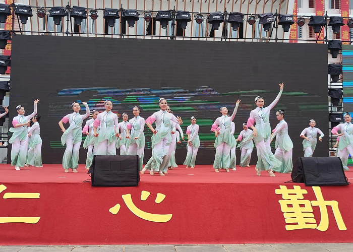 作为桂林市卫生学校的邻居,桂林学院教育学院受邀参加庆典,并按卫校的请求,为其带来了精彩的文艺节目。为了保证节目质量,桂林学院专业教师和学生,利用周末和课余的时间,不辞劳苦,见缝插针的训练和彩排,不顾酷暑燥热,不怕疲劳,连续排练了一周,终于如期登台表演。除了桂林学院学生表演的节目之外,桂林学院教师还帮助卫校排练了歌舞节目,收到了很好的效果。
