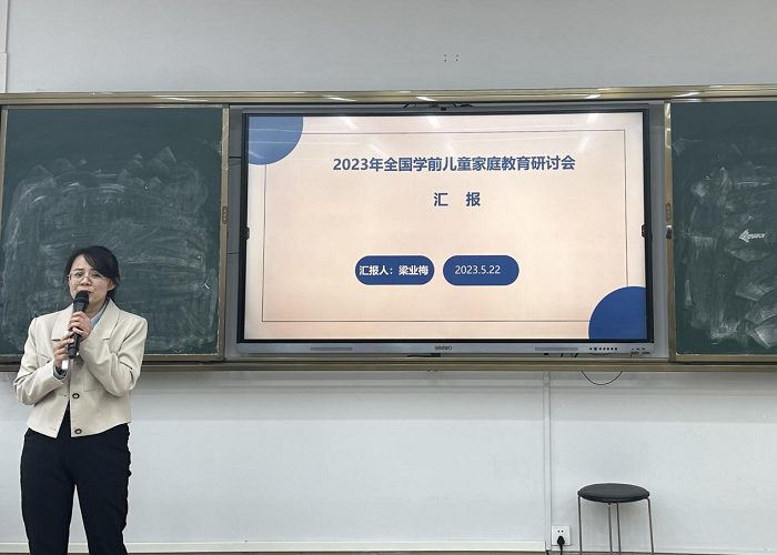 会议开始,由学前教育专业梁业梅老师对《2023年全国学前儿童家庭教育研讨会》培训内容进行汇报,分享培训心得。梁老师从研讨会培训中父亲家庭支持对学前儿童社会能力的影响研究、城市家庭早期养育的困境与挑战、我国幼儿园教师家园合作能力模型与提升路径、终身发展事业的家庭教育理论与实践、圆桌论坛——新时期家庭教育指导的挑战与对策五个方面进行分享汇报,表示希望通过分享自己的培训心得,对我院教师在教学过程以及自身家庭教育中能够有所借鉴和帮助,进一步提升学院教师教学质量。随后,黄小玲副院长对近期工作中存在的问题进行总结,并对下一阶段工作进行预告部署。