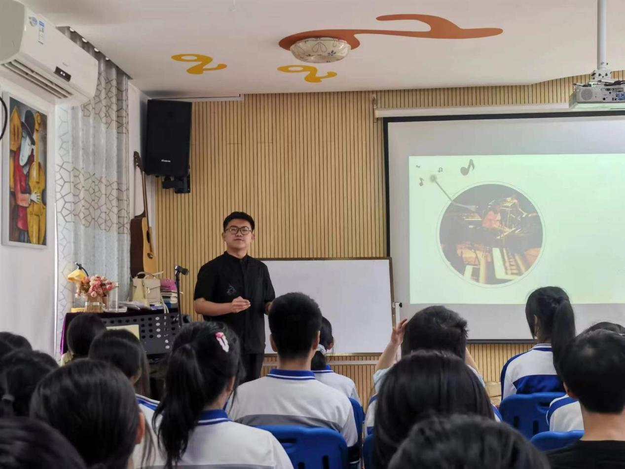 5月7日,我校举办第八届师范生教学技能大赛暨2023年全区师范生教学技能大赛选拔赛,音乐学专业王俐程和韩小玲同学分别获得高中组和初中组一等奖并代表桂林学院参加全区比赛,为了让学生能够更好地把握课堂教学,颜滢、战盛龙老师带领她们到桂林市第八中学进行课堂实践,同时也邀请了秀峰区教育局音乐教研员黄珊燕老师和八中杨明、龚萍老师进行现场指导,王俐程同学试讲《爵士音乐》,韩小玲同学试讲《歌唱祖国》,两位同学讲课思路清晰,语言表达简单易懂,赢得了学生们的喜爱。
