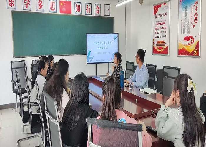 讲座交流活动主要由两部分组成,第一部分由小学教育专业教师为小学一线教育工作者进行心理知识方面宣讲;第二个部分为双方互相就比较关心的话题进行交流探讨。首先,刘雍江老师以《小学生学习动机的激发》主题,介绍了学习动机相关理论,并谈及不同理论对小学教育教学工作的启示。黄莹老师就《埃里克森的社会心理发展理论》为主题介绍了学龄期儿童的具体发展任务,以及如何将该理论运用到小学教师的教育教学实践中。然后,双方就工作实践中遇到的难题困惑进行深入交流,如家校沟通与合作问题、学生心理健康问题等方面做了深入探讨。