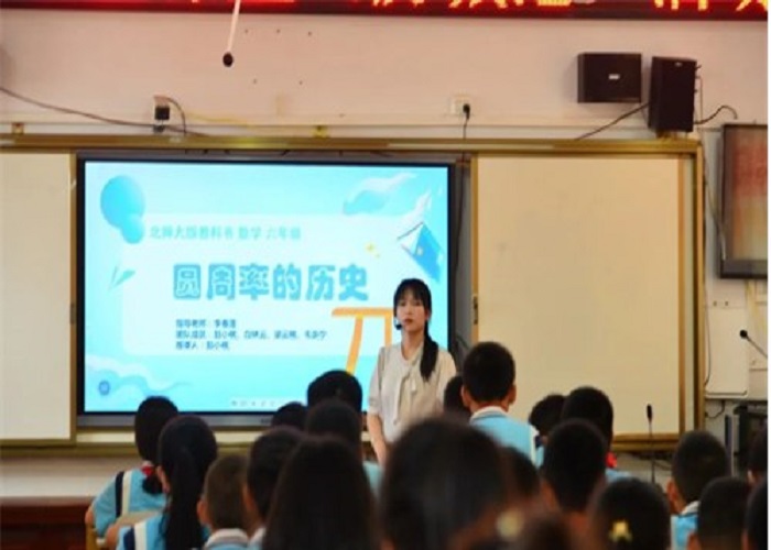 教育学院由田丽萍老师带领2022级专升本彭小桃、韦央宁2名师范生代表做《圆周率的历史》优秀课例展示。活动前,2名师范生多次前往桂林市临桂城区第三小学进行有生磨课,李春莲副校长对两位师范生的磨课进行了耐心地指导。