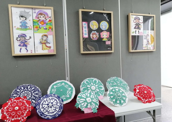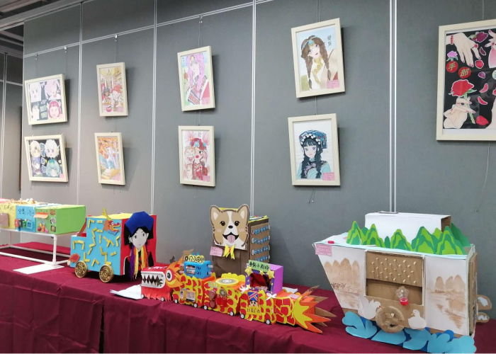 本次展览作品约300多件,展品主要包括近两个学期黄红韩老师执教的《幼儿园手工制作》《创意儿童美术》《教玩具设计制作》《水墨画基础》课程,以及张梅洁老师执教的《卡通画造型与技法》课程的课堂作业,其主题涵盖:桂林山水地域文化、中国传统文化“梅兰竹菊”、少数民族人物、中国成语故事、古典诗词、环境保护等诸多内容。作品内容丰富多样,有剪纸、卡通画、水墨画、教玩具制作、超轻黏土、团扇等,其形式多样、作品内涵丰富,饱含了审美和价值观引领的人文情怀,体现出学生良好的专业素养。
