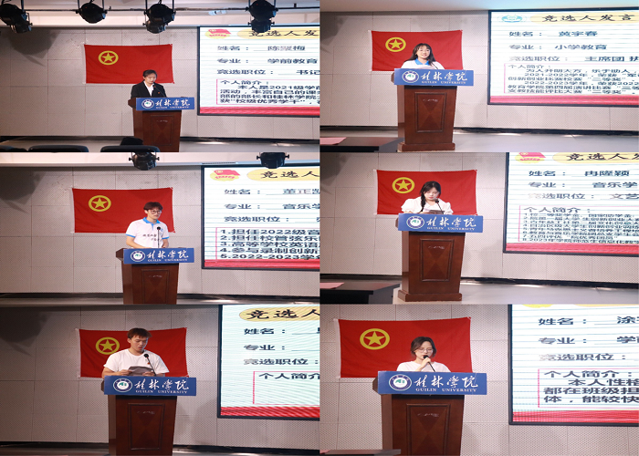会议由学生副书记李大毛主持,大会在庄严的中国共青团团歌中拉开序幕。随后,大会进入新一届学生干部竞选环节,参加选举的42位候选人依次上台发表竞选演讲,候选人结合各自在团学工作中的实践经历及所获成绩,提出自己的竞选目标,努力争取学生代表手中的珍贵一票。