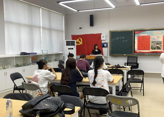 活动开始,张梅洁老师向支部成员详细讲解了学校校训的来源和具体含义。"向学、向善、自律、自强"概括了学校的办学思想、办学理念、办学特色,既有浓厚的文化积淀,又有与时俱进、继承和创新并重的时代气息。同时,从科研平台、科研成果和学术资源三个方面来介绍我校的发展历程,详细讲解了校歌《造就人才的殿堂》歌词含义,校歌歌词通俗易懂,内容贴近实际,语言精练,意蕴深远,既隐含了我校作为全国首批独立学院争创一流办学水平的追求,又突显了年轻的桂院学子求是、笃行、青春、活力的精神面貌,最后,支部成员集体观看青年奋斗的相关视频,视频中全校师生朝气蓬勃的面貌和奋发向上的斗志,深刻感染着支部每一位成员。通过观看视频支部成员深刻领悟到作为一名新时代的党员,是时代的潮头勇者,是时代的中坚力量,我们面临着难得的建功立业的人生际遇,也肩负着“天将降大任于斯人”的时代使命。