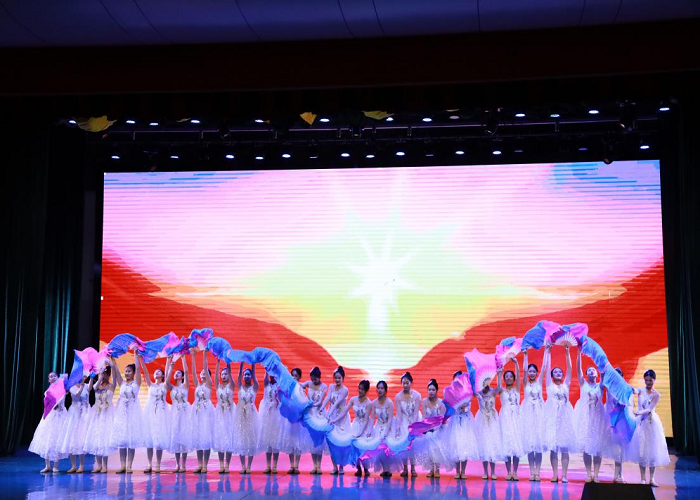 讲好红色故事,用活红色资源。教育学院音乐艺术党课每学期举办一期,至今已走过5个年头,学院始终将思想教育、党性修养与专业实践深度融合,让学生在音乐、器乐、舞蹈、话剧等艺术课程中得到心理的洗礼,感受中国共产党百年发展历程及青年肩上的民族复兴重任。