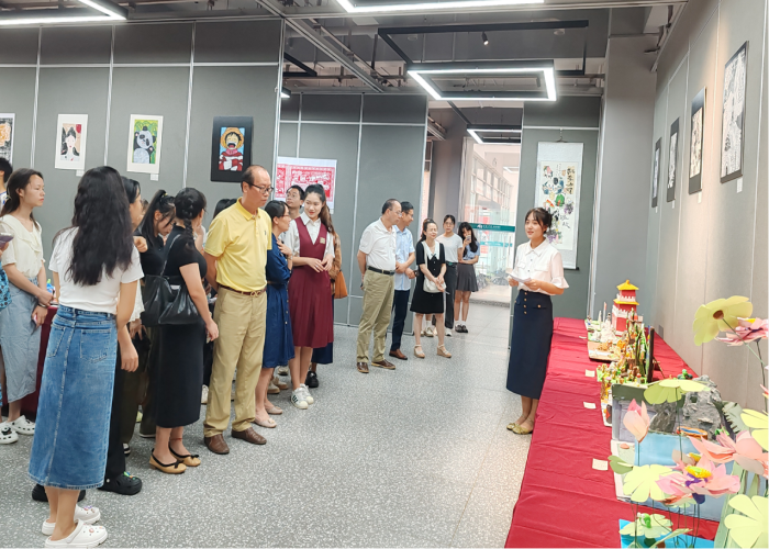 为培养学生跨学科融合能力,提高学生审美情趣和综合素质,激发学生创新能力,6月13日上午,教育学院在嘉善楼展厅举办2020级小学教育专升本专业美术课程“墨彩绘童画,诠释新时代”课程思政作品展。我院院长彭超、党总支书记周杰、副院长黄小玲,以及小学教育教研室老师和学生出席了此次开幕式。