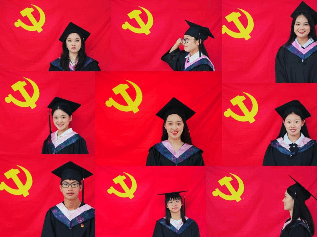 随后,全体毕业生党员重温入党誓词,并与党旗合影。