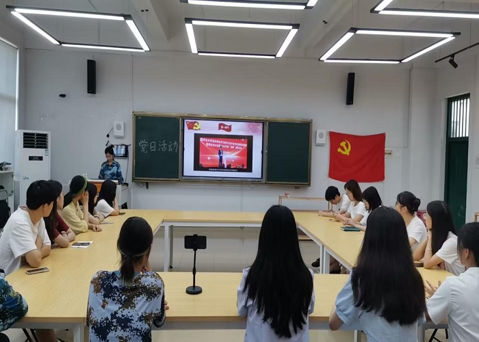 2023年6月27日中午,教育学院学前与音乐学生党支部在6229教室开展“党旗领航•铸牢思想根基”的主题党日活动,参加本次活动的有支部支部书记张梅洁老师,支部副书记王雅老师,以及支部党员、预备党员和积极分子。