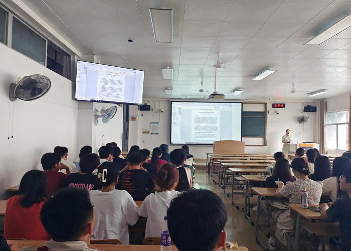 课程开始,李安然副院长首先对2023级音乐学专业新生入学前的专业基础进行了调研,包括入学前学习音乐基本技能的年限、主要方向、生源地等情况进行摸底,并对专业发展情况、培养目标和毕业要求做了相关介绍,解读了《2023级音乐学本科专业应用型人才培养方案》,包含本科阶段主干课程、学制、课程结构与学分分布、每学期教学周数、周学时、必修、选修科目门数等方面内容。随后分别从四个平台对音乐学专业8个学期所开设的系列课程进行解读,提醒新生提前做好学业规划,明确目标及阶段性任务。
